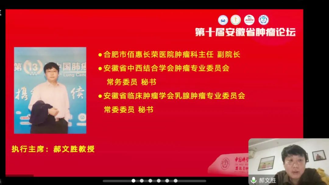 12.10-12.14第十屆安徽省腫瘤論壇暨分子靶向藥物和免疫治療學(xué)習(xí)班、安徽省中西醫(yī)結(jié)合學(xué)會腫瘤專業(yè)委員會、2023年學(xué)術(shù)年會安徽省臨床腫瘤學(xué)會乳腺癌專業(yè)委員會第五屆學(xué)術(shù)年會在皖召開,旨在加強(qiáng)學(xué)術(shù)研究和專業(yè)交流。期間,我院腫瘤科主任郝文勝擔(dān)任肺癌分會場一和二的主持人,并與來自省內(nèi)外的知名專家分享了關(guān)于肺癌治療方式及最新進(jìn)展的重要內(nèi)容。