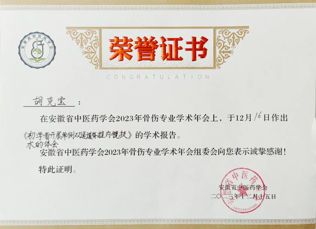 由我院骨科主任胡克寶、副主任醫(yī)師徐軍輝共同撰寫的多篇論文均被中華醫(yī)學(xué)會疼痛學(xué)分會第十九屆學(xué)術(shù)年會選中,屆時(shí)將以大會發(fā)言交流和電子壁報(bào)交流的形式在全國疼痛年會上展示。