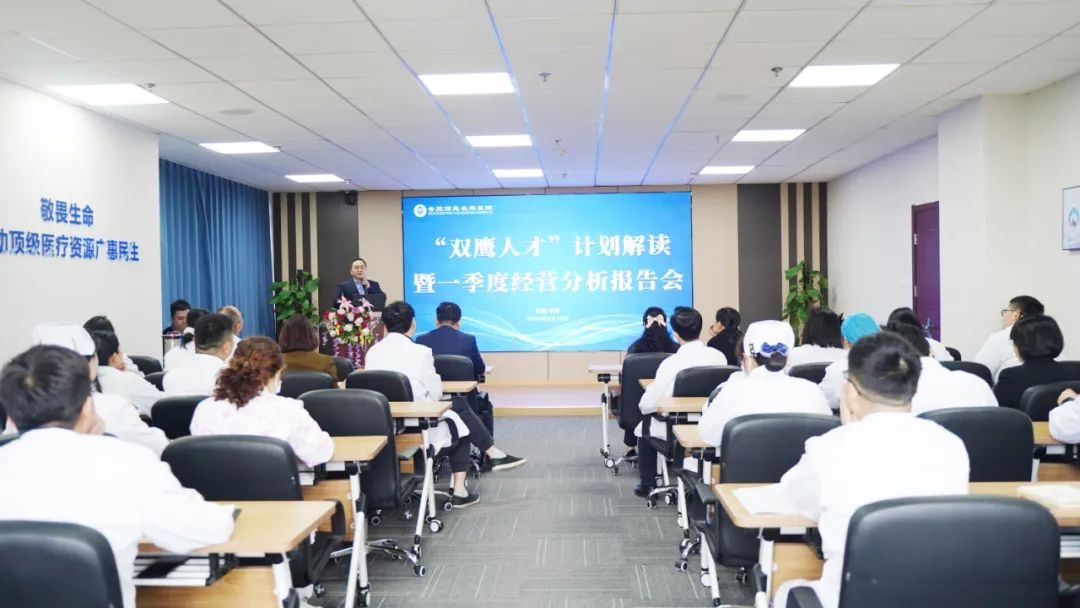 為加強醫(yī)院人才培養(yǎng)建設(shè),提升醫(yī)院經(jīng)營管理水平,實現(xiàn)年度任務(wù)目標順利達成,推動醫(yī)院高質(zhì)量發(fā)展。4月10日下午,我院召開“雙鷹人才”計劃解讀暨2024年一季度經(jīng)營分析會。院領(lǐng)導班子成員,各臨床科室主任、護士長及職能科室負責人參加會議。會議由黨支部書記、副院長張永恩主持。