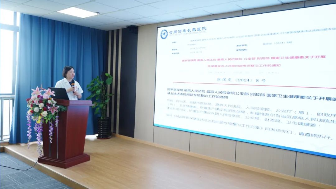 按照國家醫(yī)保局、省市醫(yī)保局醫(yī)?;疬`法違規(guī)問題專項(xiàng)整治工作會議安排部署,為規(guī)范醫(yī)療服務(wù)行為,維護(hù)醫(yī)保基金安全,以確保醫(yī)保體系的健康運(yùn)轉(zhuǎn),4月24日下午,合肥佰惠長榮醫(yī)院召開《2024年醫(yī)?;疬`法違規(guī)問題專項(xiàng)整治工作方案 》政策解讀專題會議,會議由醫(yī)務(wù)部主任張?jiān)缕贾鞒?。科主任及護(hù)士長參加會議。