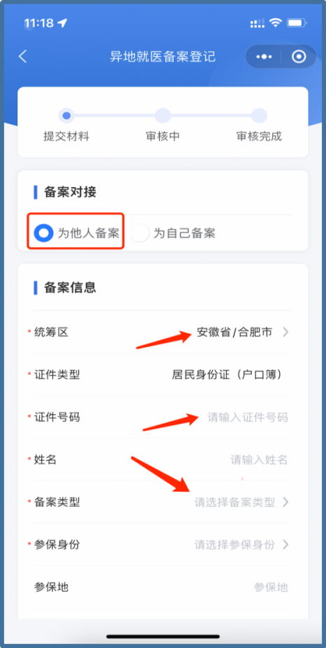 在界面上勾選【為他人備案】,選擇“他人”就醫(yī)人所在的【統(tǒng)籌區(qū)】、【證件類(lèi)型】,輸入就醫(yī)人的證件號(hào)碼,系統(tǒng)自動(dòng)查詢(xún)就醫(yī)人的參保信息,選擇備案類(lèi)型、就醫(yī)地、開(kāi)始日期,填寫(xiě)聯(lián)系人電話、聯(lián)系人地址等信息,按界面顯示所需的材料清單,上傳電子材料(手機(jī)等拍照jpg格式即可),填寫(xiě)完成并核對(duì)無(wú)誤后,點(diǎn)擊【提交】,完成備案。