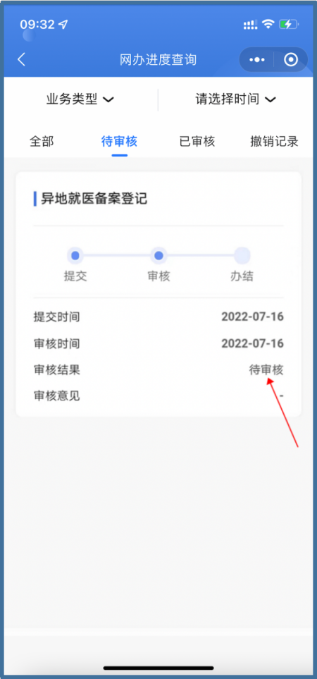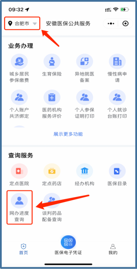 打開(kāi)“安徽醫(yī)保公共服務(wù)”微信小程序,選擇左上角本人的【參保地】(如合肥市),點(diǎn)擊“網(wǎng)辦進(jìn)度查詢(xún)”。在“網(wǎng)辦進(jìn)度查詢(xún)”界面,可以查詢(xún)到通過(guò)線上辦理異地就醫(yī)備案業(yè)務(wù)的進(jìn)度情況。
