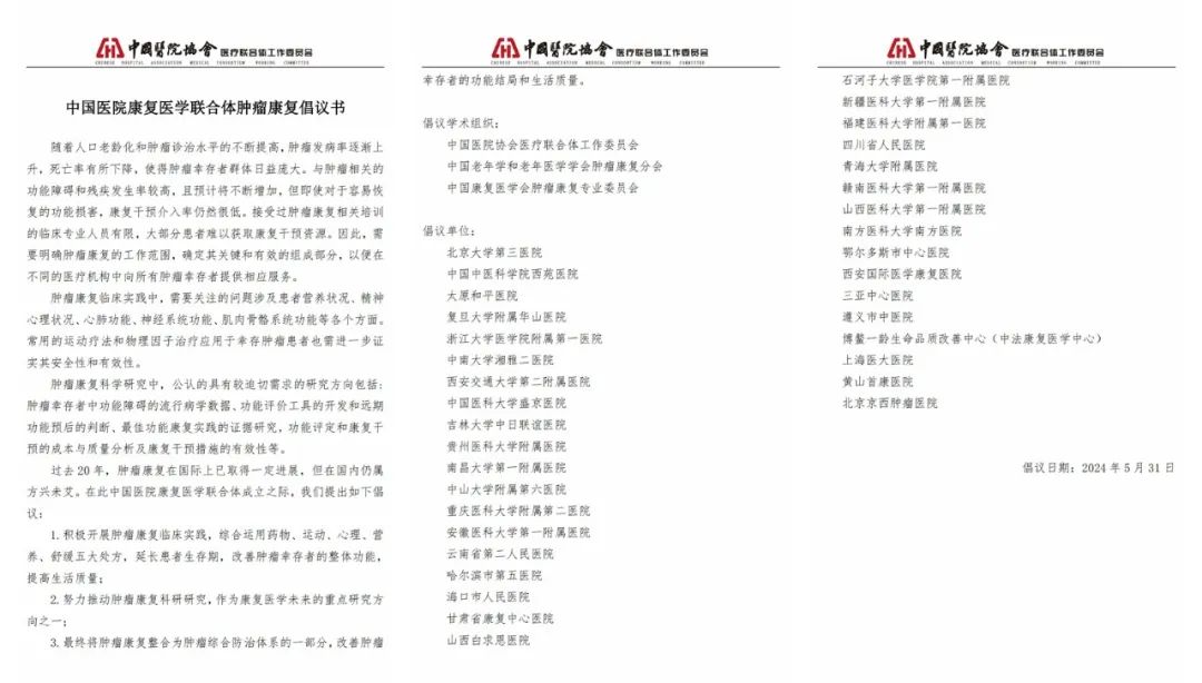 “中國(guó)醫(yī)院康復(fù)醫(yī)學(xué)聯(lián)合體腫瘤康復(fù)”倡議書