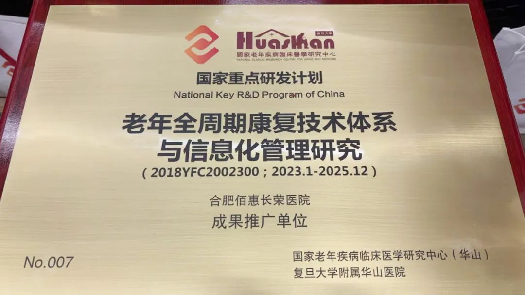 △“老年全周期康復(fù)技術(shù)體系與信息化管理研究”牌匾