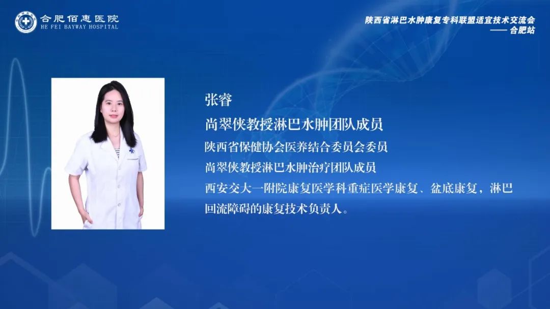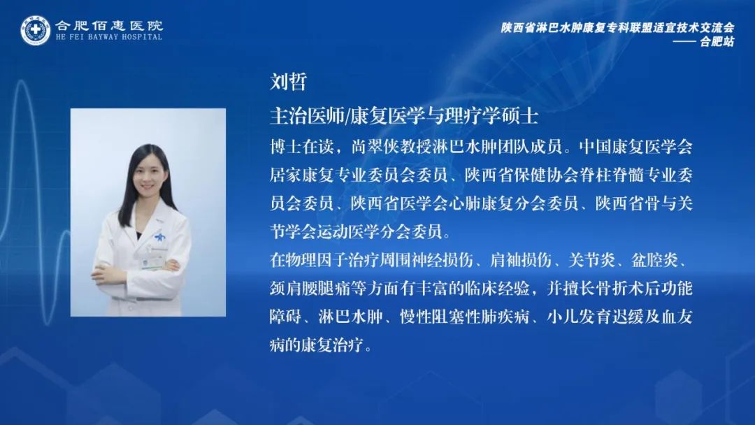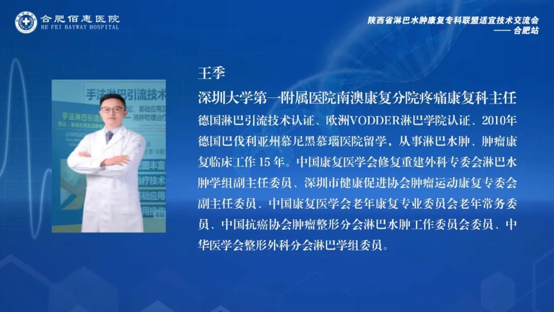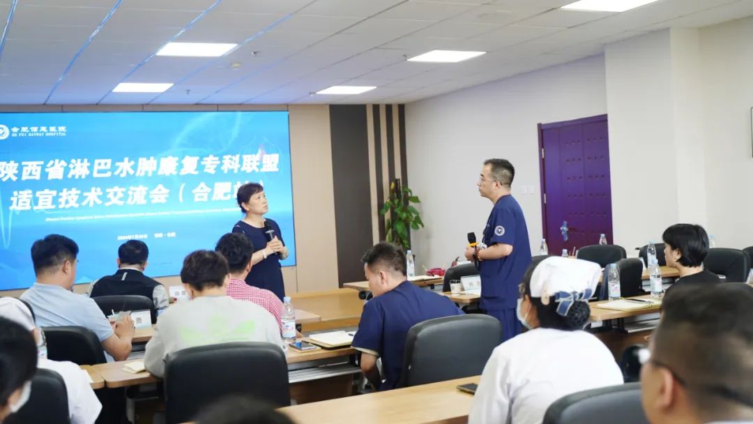 會(huì)議邀請(qǐng)了陜西省淋巴水腫康復(fù)??坡?lián)盟的多位資深專家,包括西安交通大學(xué)第一附屬醫(yī)院康復(fù)醫(yī)學(xué)科尚翠俠教授、劉哲博士、張睿治療師、雷雨果助理,以及深圳大學(xué)第一附屬醫(yī)院南澳康復(fù)分院疼痛康復(fù)科王季教授。這些專家的參與,為會(huì)議帶來了豐富的學(xué)術(shù)資源和實(shí)踐經(jīng)驗(yàn)。同時(shí),合肥佰惠醫(yī)院業(yè)務(wù)副院長張偉萍、副院長范培武、醫(yī)務(wù)部主任張?jiān)缕家约跋嚓P(guān)科室的主任、治療師和護(hù)士團(tuán)隊(duì)也積極參與其中,共同探討和學(xué)習(xí)淋巴水腫治療的前沿技術(shù)和實(shí)踐經(jīng)驗(yàn)。