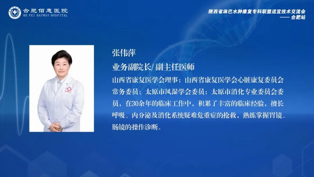 合肥佰惠醫(yī)院業(yè)務(wù)副院長張偉萍在會(huì)議致辭中強(qiáng)調(diào)了此次會(huì)議對(duì)于提升我院淋巴水腫治療水平的重要意義。她指出,淋巴水腫作為一種嚴(yán)重影響人類健康和生活質(zhì)量的疾病,隨著腫瘤發(fā)病率的不斷上升和規(guī)范化治療的推廣,腫瘤綜合治療后淋巴水腫的患者數(shù)量正在迅速增加。作為該領(lǐng)域的聯(lián)盟單位,合肥佰惠醫(yī)院致力于在這一領(lǐng)域取得新的突破和進(jìn)展。她鼓勵(lì)與會(huì)學(xué)者充分利用這次學(xué)術(shù)研討會(huì)的機(jī)會(huì),積極參與學(xué)習(xí)和交流,通過集思廣益和知識(shí)共享,共同推動(dòng)醫(yī)院在淋巴水腫治療領(lǐng)域的進(jìn)步。