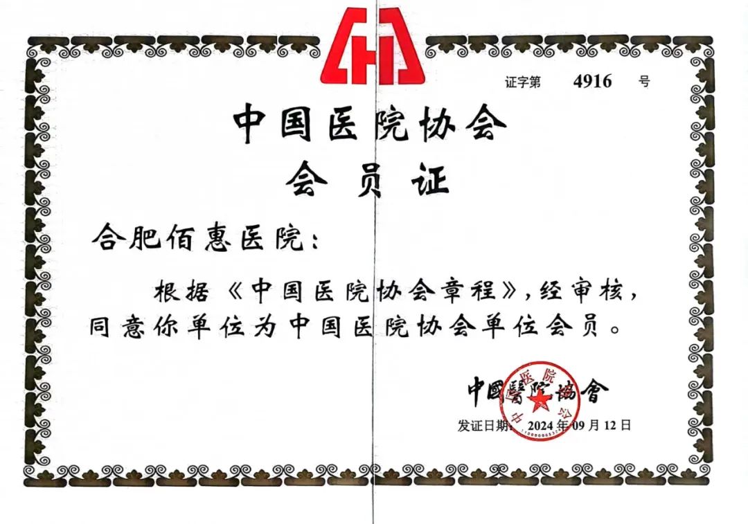近日,根據(jù)《中國(guó)醫(yī)院協(xié)會(huì)章程》的相關(guān)規(guī)定,合肥佰惠醫(yī)院正式成為中國(guó)醫(yī)院協(xié)會(huì)單位會(huì)員。這一榮譽(yù),不僅是合肥佰惠醫(yī)院發(fā)展歷程中的一座重要里程碑,更是代表了行業(yè)內(nèi)外對(duì)我院在醫(yī)療服務(wù)、專業(yè)技術(shù)以及管理水平等多方面的高度認(rèn)可。