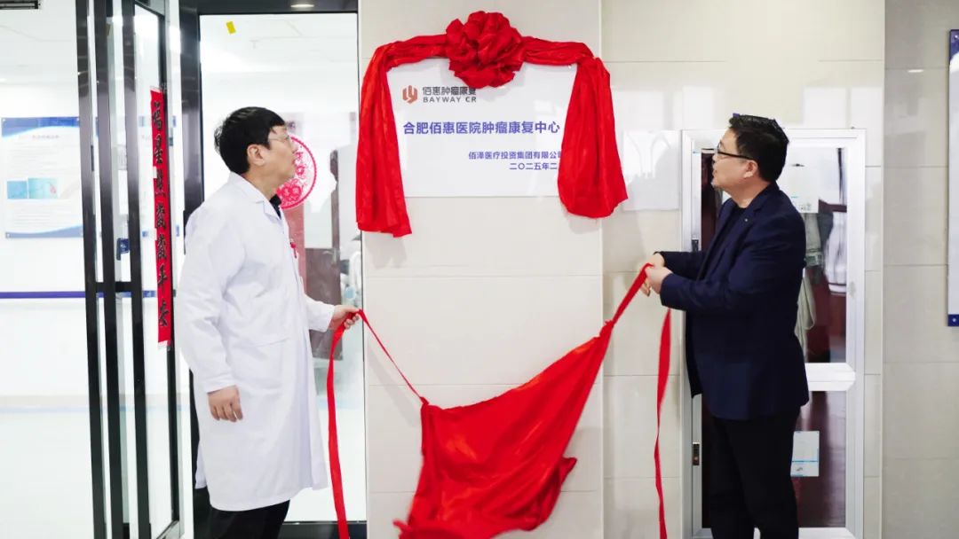 佰澤醫(yī)療集團(tuán)副總裁、合肥佰惠醫(yī)院院長(zhǎng)盧繼忠與腫瘤科/腫瘤康復(fù)主任郝文勝共同為腫瘤康復(fù)中心揭牌。