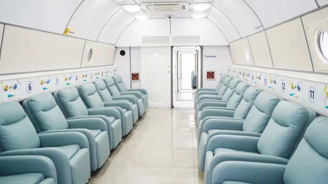 氧艙內(nèi)配有LED照明、可移動(dòng)沙發(fā)座椅、大型冷熱中央空調(diào),專用的吸氧裝置、實(shí)時(shí)視頻監(jiān)控設(shè)備和實(shí)時(shí)語音對講系統(tǒng)等裝置,能夠?qū)崟r(shí)監(jiān)測并精確調(diào)節(jié)氧艙內(nèi)壓力、氧氣濃度等關(guān)鍵參數(shù),確保治療過程的安全性和有效性。