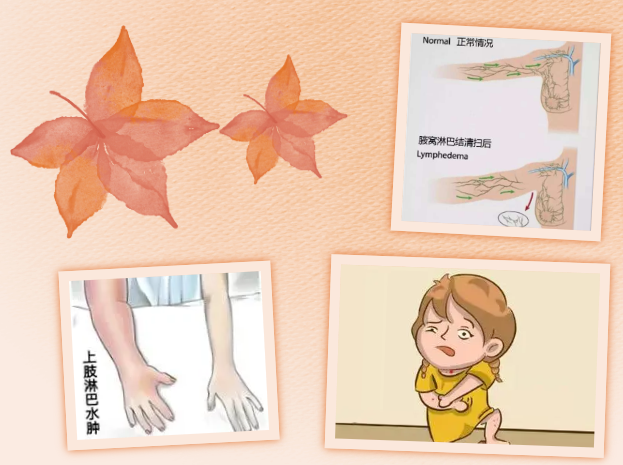 1.避免做:劇烈運(yùn)動(dòng)、提重物、過冷/過熱、長(zhǎng)時(shí)間重復(fù)性動(dòng)作如:“擦、推、拉”等 、患側(cè)手臂輸液、注射藥物、戴過緊的首飾、穿過緊的衣服等。